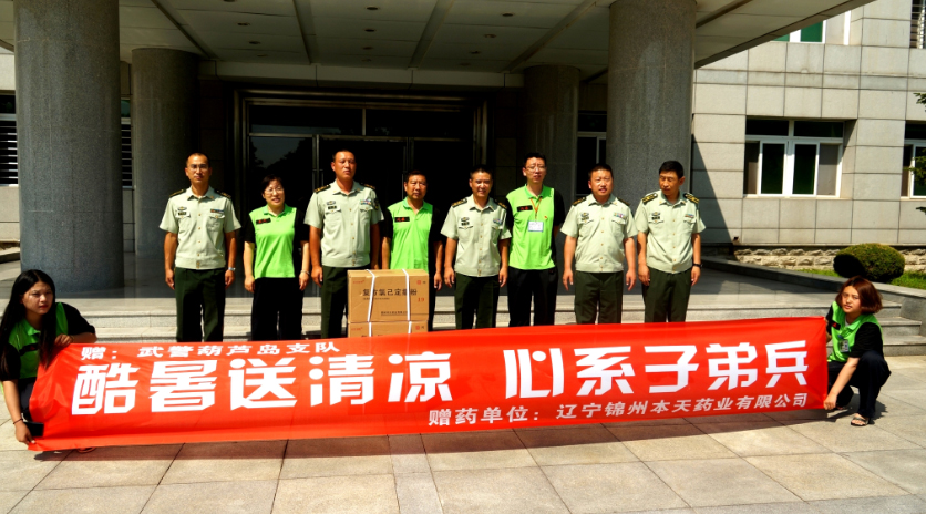 31日公司黨委王書記,本天藥業(yè)質(zhì)量主管裴經(jīng)理與公司營銷中心人員,一起到錦州市武警總隊(duì)和葫蘆島市武警總隊(duì)進(jìn)行了擁軍慰問,并向廣大官兵贈(zèng)送了價(jià)值數(shù)萬元的防暑降溫藥品,受到了廣大武警官兵的熱烈歡迎。